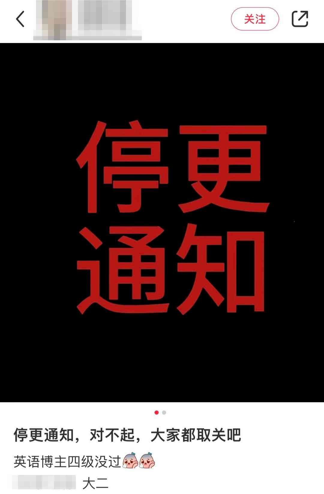 小红书博主停更引关注 一位在小红书拥有9万多粉丝的英语博主因英语四级未过宣布停更,引发网友热议。博主姓周,大二学生,账号起初为监督学习,非英语学霸。在停更通知中自嘲“英语学渣”,坦言身份普通。成绩公布后,选择坦然面对,赢得众多网友认可和支持。停更事件不仅反映教育焦虑问题,更展现了年轻人积极正直的一面。涌现出这样的年轻人,令人感到欣慰和鼓舞,值得我们肯定与关注。 2024-03-07 06:49